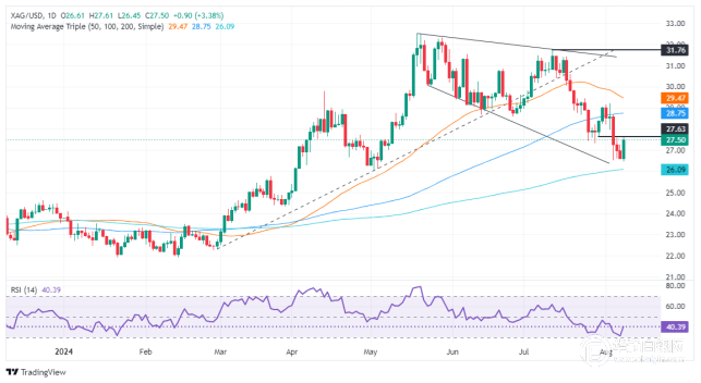 【华通网8月9日讯】•白银价格位于27.49美元,在收复27.00美元后上涨逾3.50%。