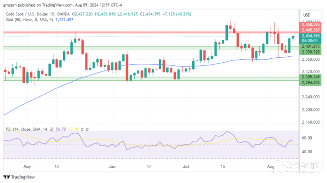如果成功测试2445-2450美元阻力位,则将把金价推向历史高点。
