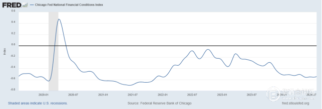 当前金融环境的特点是市场流动性稳定,芝加哥联储金融状况指数下降至-0.546,如下图所示。这表明货币宽松政策即将出台。这种情况有利于白银,因为较低的利率和流动性的增加使贵金属作为避险资产更具吸引力。
