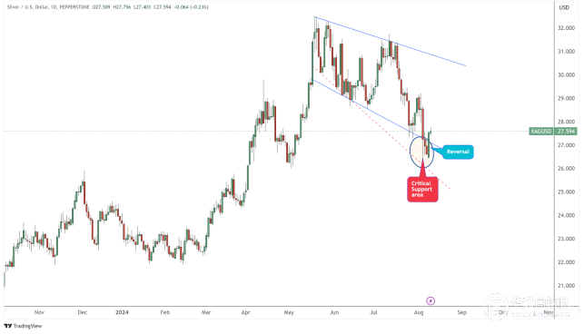 【华通网8月12日讯】•在强劲的技术指标和历史价格形态的支撑下,白银正接近关键底部。
