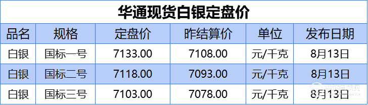 上海华通现货白银定盘价:一号国标、二号国标、三号国标如下: