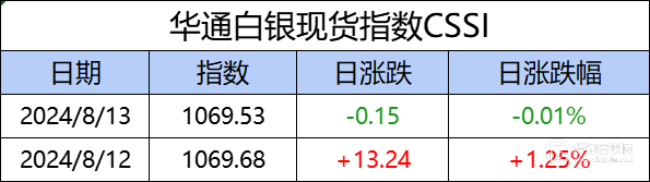 华通白银现货指数cssi走势日报,今日指数1069.53,日涨跌-0.15,日涨跌-0.01%