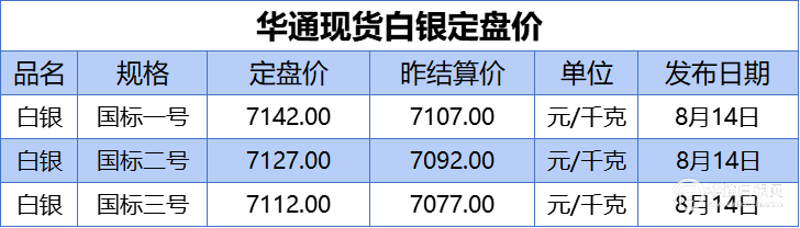 上海华通现货白银定盘价:一号国标、二号国标、三号国标如下: