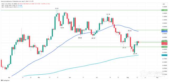 持续突破27.85美元可能创造上行势头,挑战下行的50日移动均线29.32美元,紧随其后的是另一个关键的50%水平29.50美元。