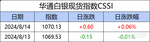华通白银现货指数cssi走势日报,今日指数1070.13,日涨跌 0.60,日涨跌 0.06%