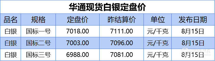 上海华通现货白银定盘价:一号国标、二号国标、三号国标如下: