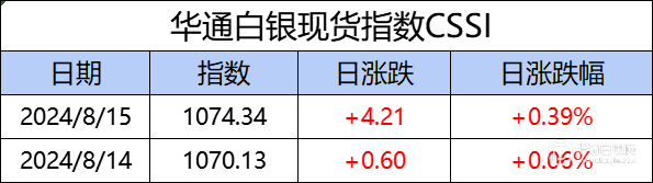 华通白银现货指数cssi走势日报,今日指数1074.34,日涨跌 4.21,日涨跌 0.39%