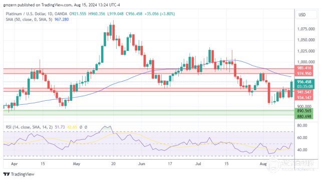 如果铂金攀升至960美元上方,则将向下一个阻力位975-985美元区间移动。
