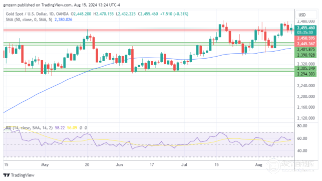 【华通网8月16日讯】•黄金上涨,因交易者利用最近的回调作为增加多头头寸的机会。