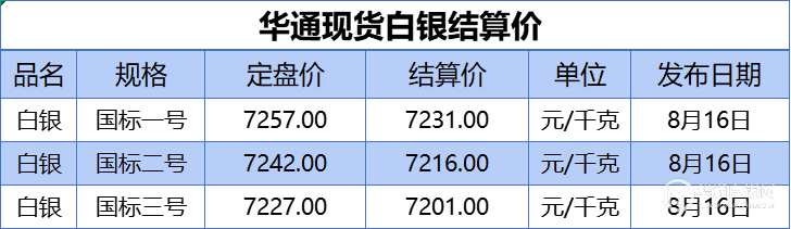 上海华通现货白银结算价:一号国标、二号国标、三号国标如下: