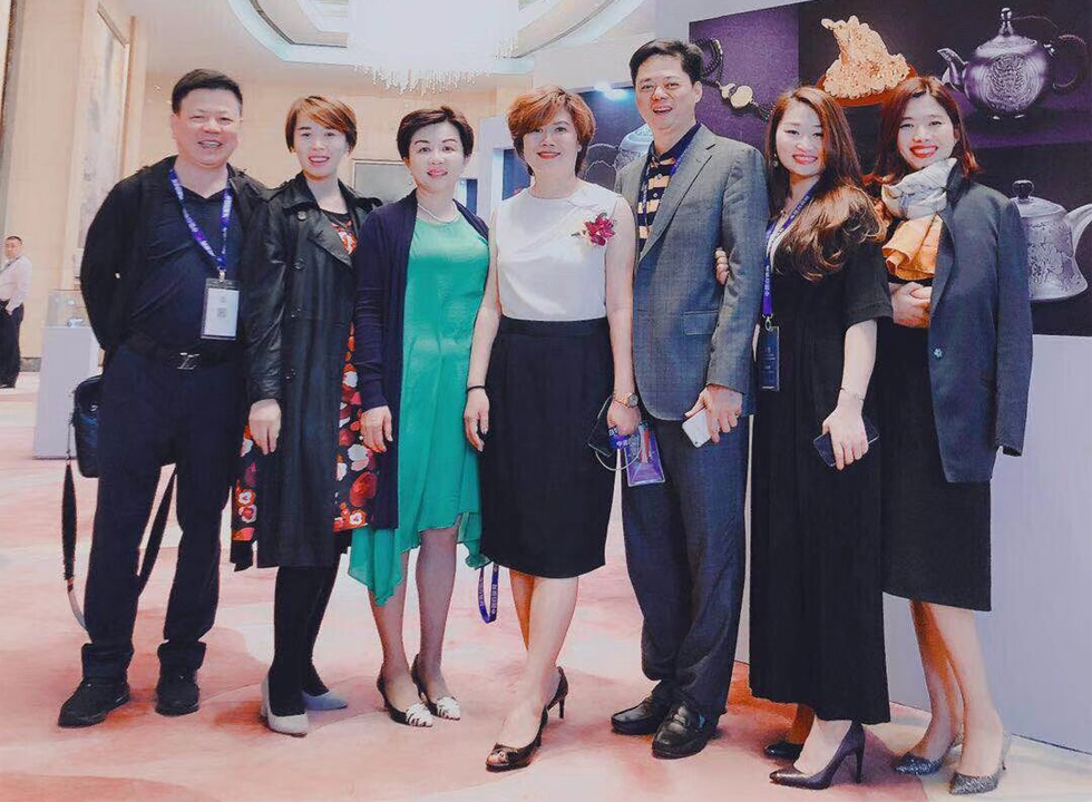 张霞(中间)与她的企业家朋友们在第十五届白银订货会上的合影