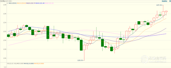 周三(10月24日),国际现货黄金及美元出现难得的双涨态势。国际现货黄金价格最高上探1234.30美元/盎司,最终收于1234.2美元/盎司,黄金 成功突破了1230美元/盎司,创三个月新高。美指最高上探96.542,最终收盘96.420,涨幅达0.50%。此次美元和黄金的大幅上涨主要得益于美股大跌,纳指录得自2011年8月18日以来的最大单日跌幅,使得市场避险情绪急剧升温。避险买盘涌入美元以及黄金。