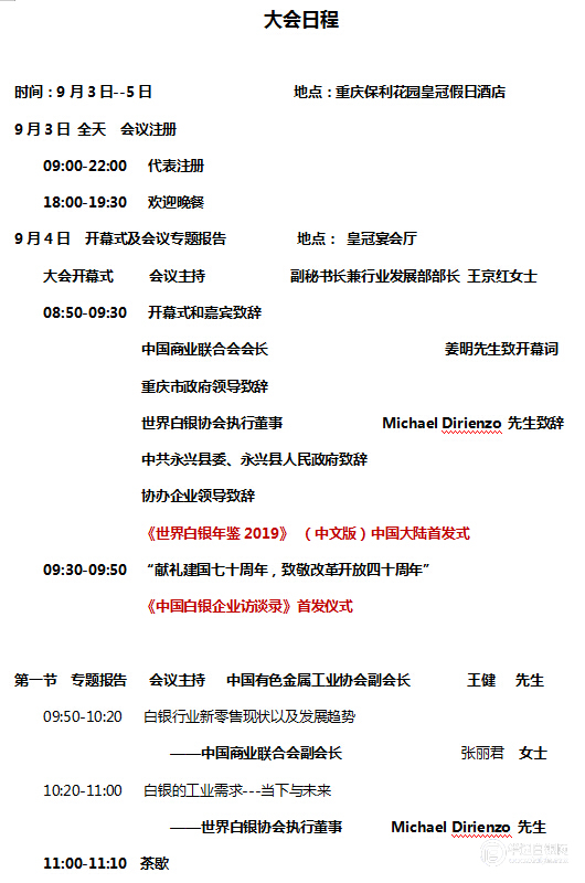 2019年第十八届中国国际白银年会暨2019年亚太零售商大会贵金属特展将于2019年9月3日—5日在中国重庆召开。