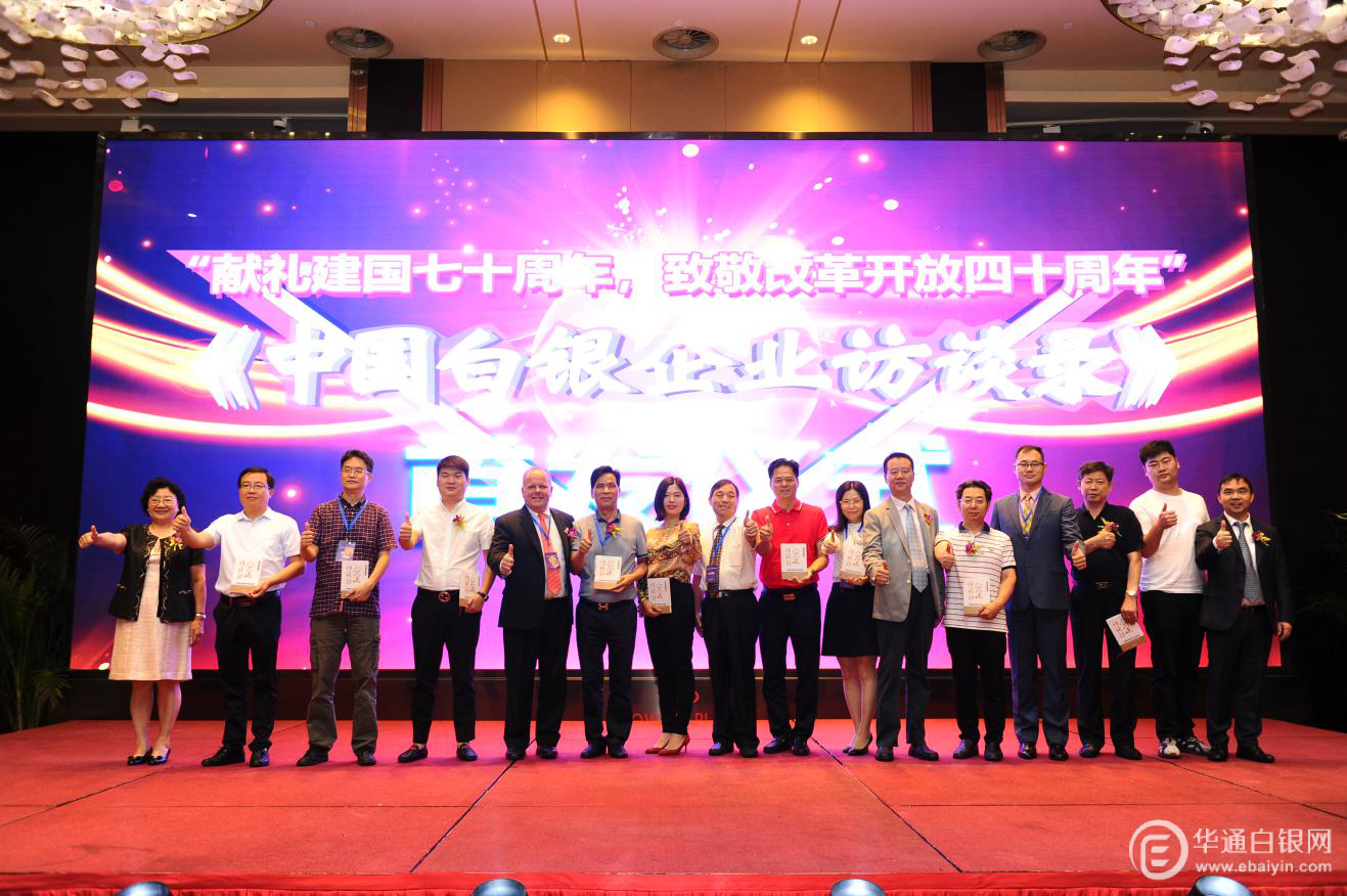 由中国白银网推出的“献礼建国七十周年,致敬改革开放四十周年”的《中国白银企业访谈录》首发仪式上,河南豫光金铅集团有限责任公司、深圳市中金岭南有色金属股份有限公司、永兴县金银协会、山东恒邦冶炼股份有限公司、中钞长城贵金属有限公司、广东金业贵金属有限公司、上海全银贸易有限公司、个旧联兴贵金属有限公司、宁波福祥地贵金属有限公司、郑州明达货运有限公司、河南金利金铅集团有限公司、上海坤泰集团实业投资有限公司等企业代表上台,与大会领导嘉宾一起参加赠书仪式。