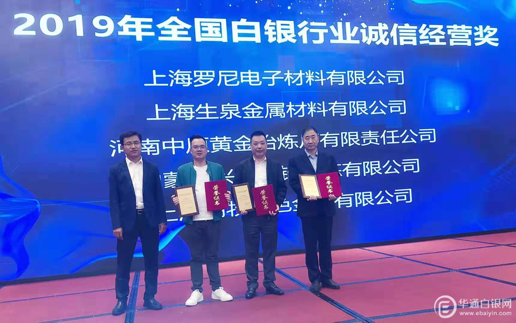 2019年全国白银订货会&上海市普陀区白银年会暨小金属金融峰会上,荣获 “2019 年全国白银行业诚信经营奖” 。